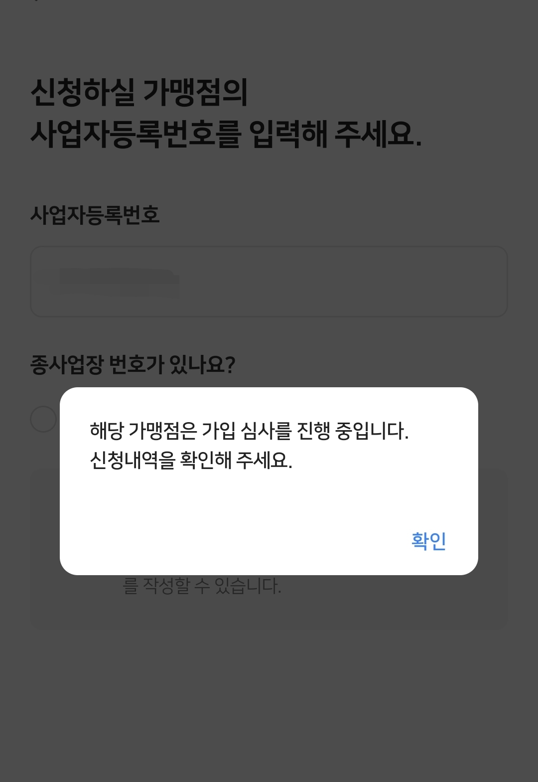 - ‘가맹점 신청’ 메뉴 클릭 → 사업자번호 입력